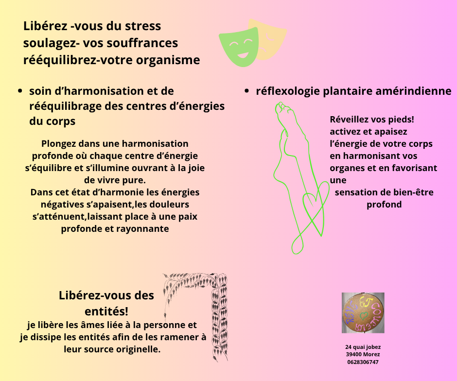 je vous propose un accompagnement chamanique visant à rééquilibrer vos énergies,libérer se qui ne vous appartient plus et à vous aider à retrouver une sensation d'unité intérieure